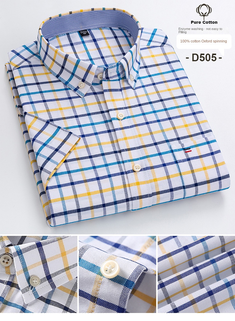 Designed for those who value relaxed fashion, this oversized short-sleeve shirt combines ease of movement with a sharp silhouette. Its smart-casual style makes it ideal for both professional and informal occasions. The square collar adds a modern twist to the traditional Oxford shirt, while the plaid pattern creates a balanced look that pairs effortlessly with jeans, chinos, or shorts.