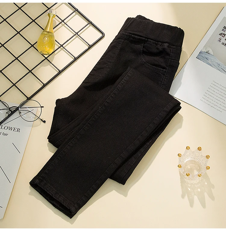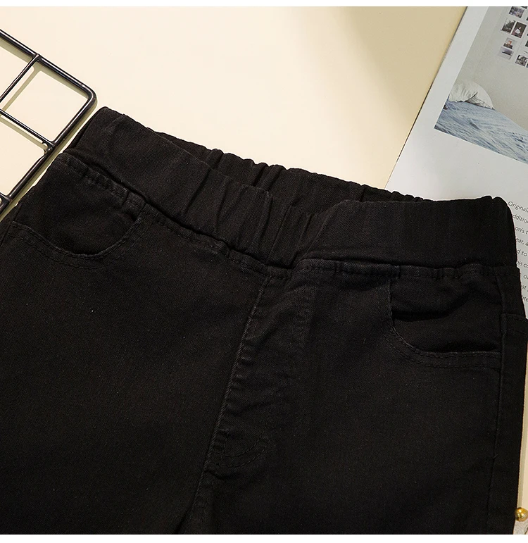 Upgrade your wardrobe with these black plus-size women’s elastic waist pencil denim jeans. Designed for spring and summer, these jeans combine comfort, style, and versatility. They are perfect for casual outings, office wear, or weekend adventures.