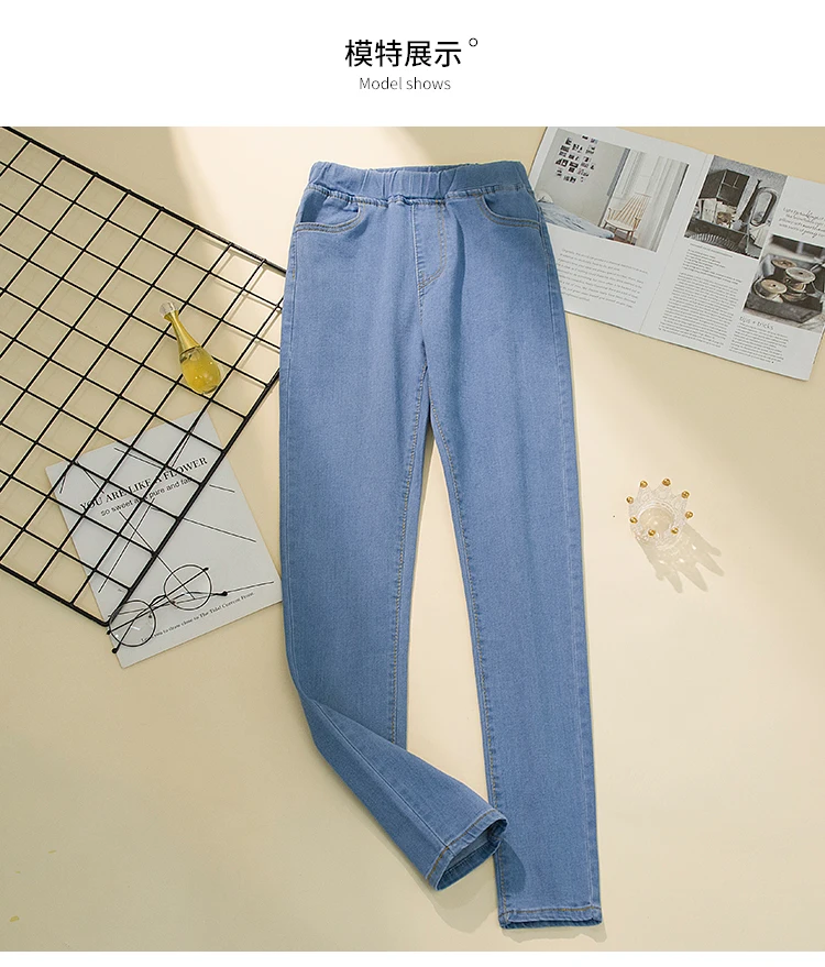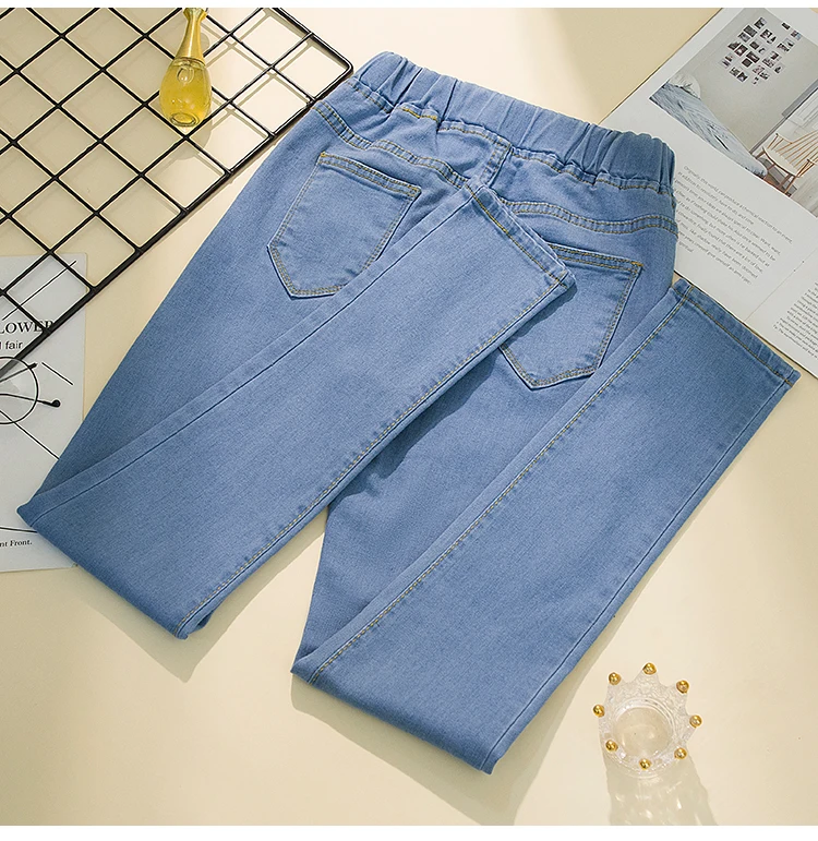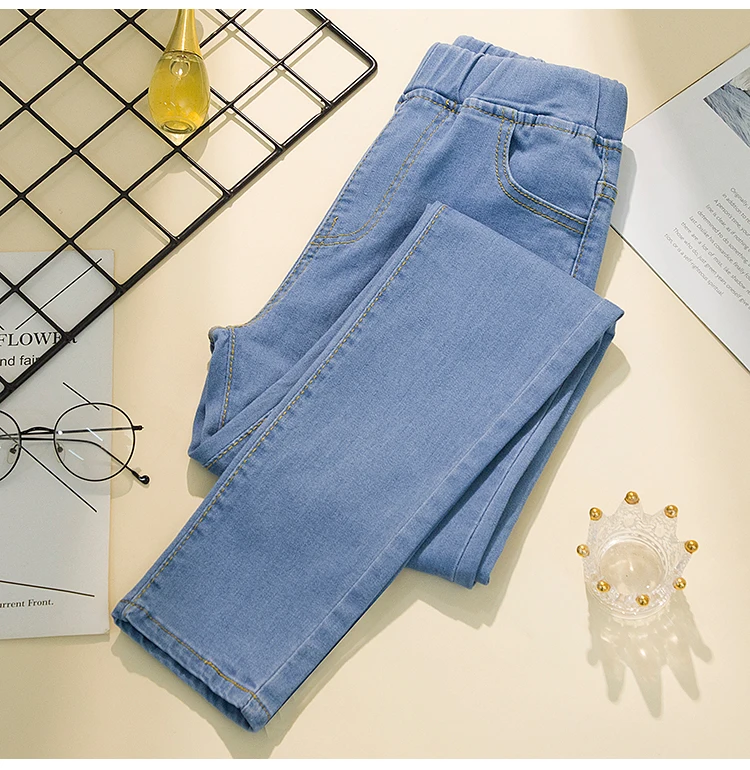 Made from thin cotton denim, these jeans are soft, breathable, and slightly stretchy. The elastic high waist provides a secure, comfortable fit for all-day wear. In addition, the pencil cut highlights your natural curves, offering a flattering silhouette. The ankle-length design makes them easy to pair with various footwear.
