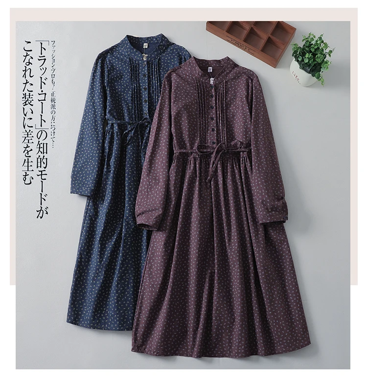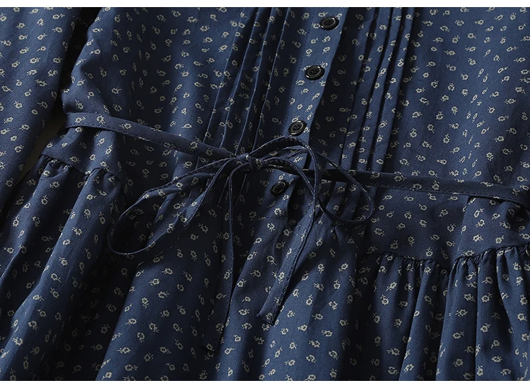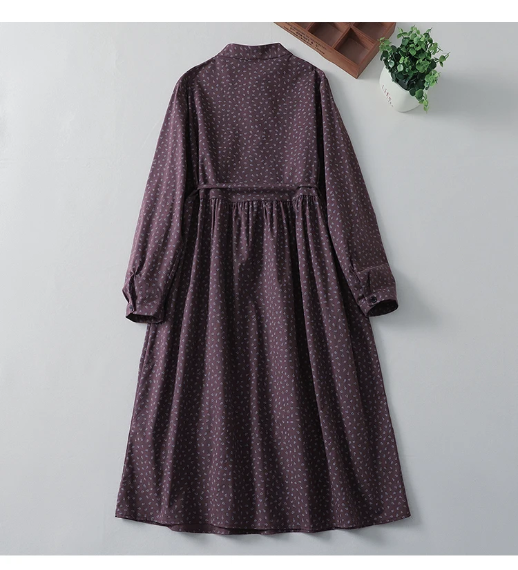 This dress features a classic O-neckline and full-length sleeves for coverage and style. Moreover, its loose waist and mid-calf length create a graceful silhouette that flatters most body shapes. The printed pattern adds visual appeal without overpowering the design.