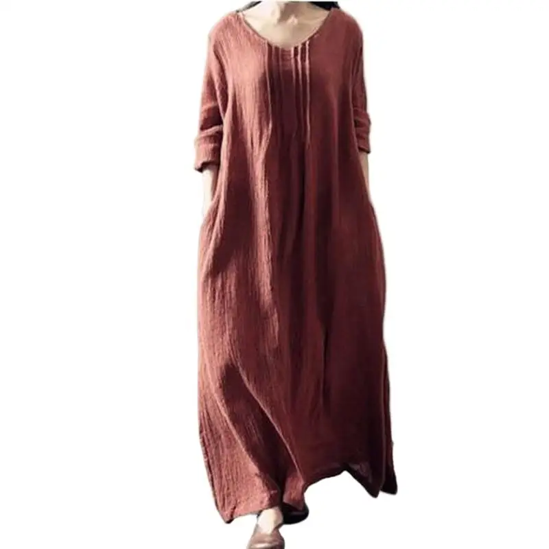 Cotton Linen Loose A-Line Vintage Dress for Women