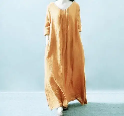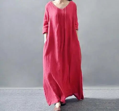 The Cotton Linen Loose A-Line Vintage Dress for Women is a floor-length, vintage-inspired A-line dress designed for comfort and style. Crafted from a soft cotton-linen blend, this dress is perfect for casual wear during spring, summer, or autumn. Additionally, the dress features pockets, adding practicality without compromising its elegance.