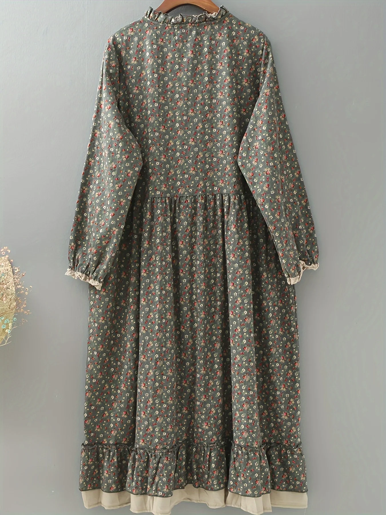 The dress features a classic O-neckline and regular sleeves, providing a timeless and versatile style. Furthermore, its tiered layers create a stylish, voluminous silhouette that enhances your figure while remaining relaxed. For example, the floral pattern adds a touch of freshness, making it ideal for spring and summer events. In addition, the loose fit allows for comfortable layering with cardigans or light jackets during cooler evenings.