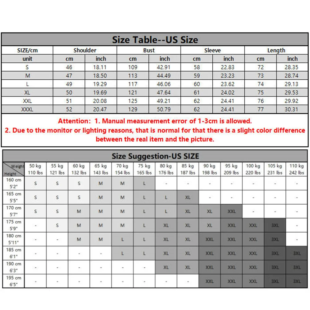 As measured by hand, a 1–3 cm difference is allowed (1 cm = 0.39 inch).