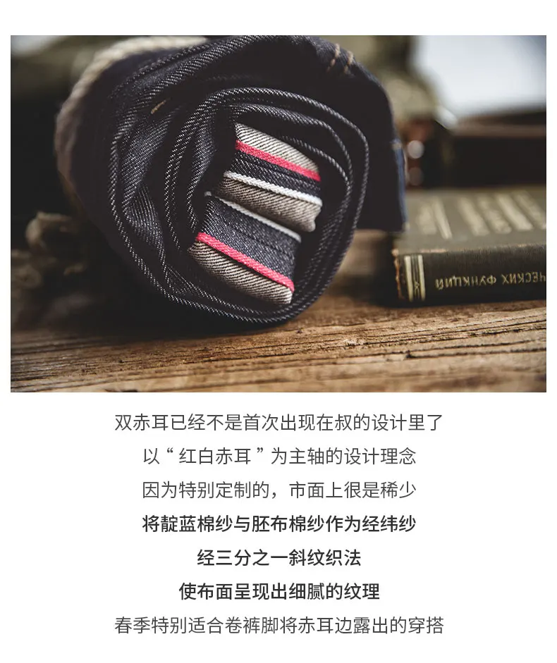 Custom red/white selvedge ID – perfect for cuffing and showing off premium detailing.