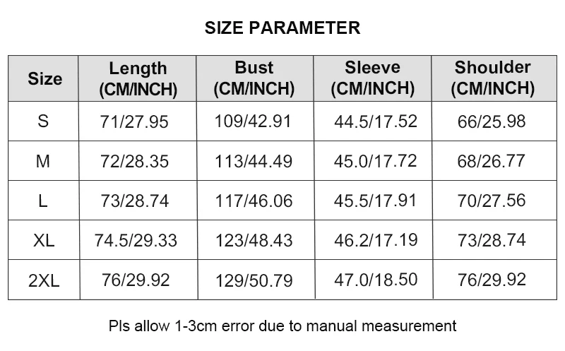 📏 Always refer to the size chart before ordering. Sizes may vary by 1–3 cm due to manual measurement. For questions, contact us.