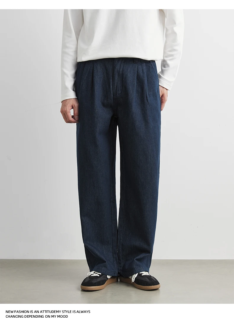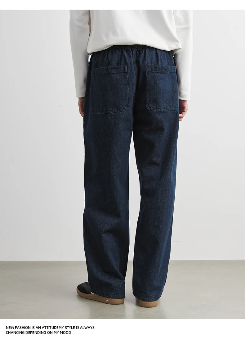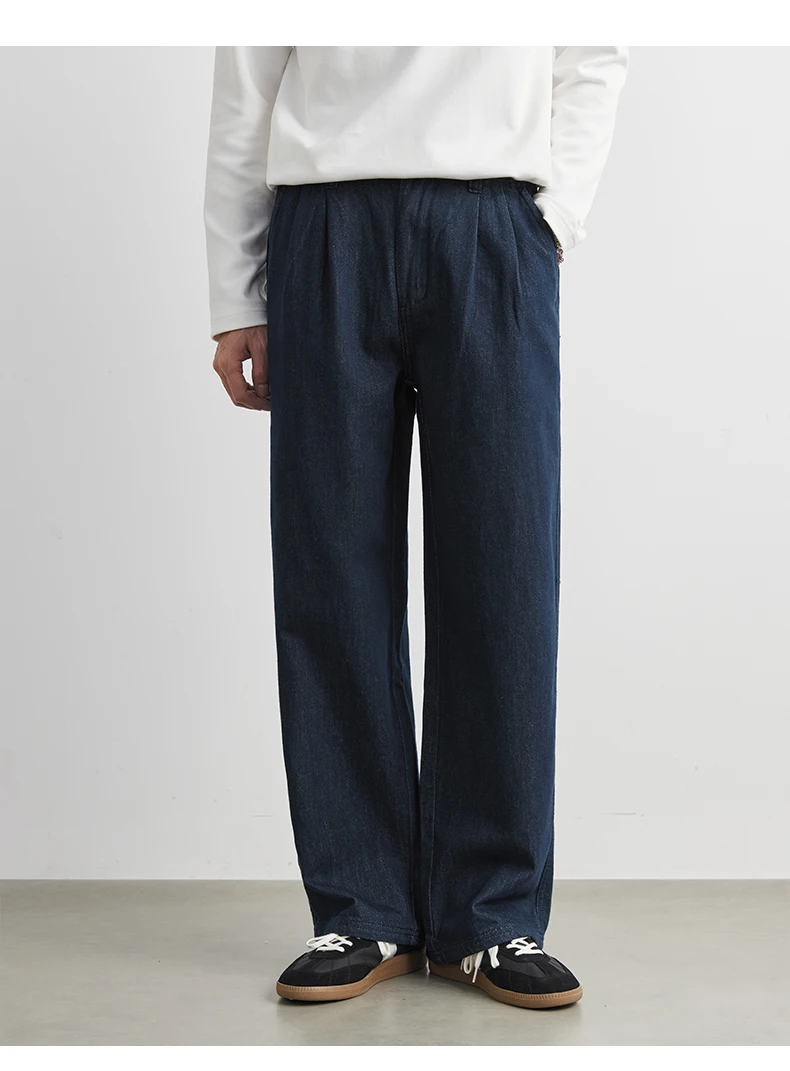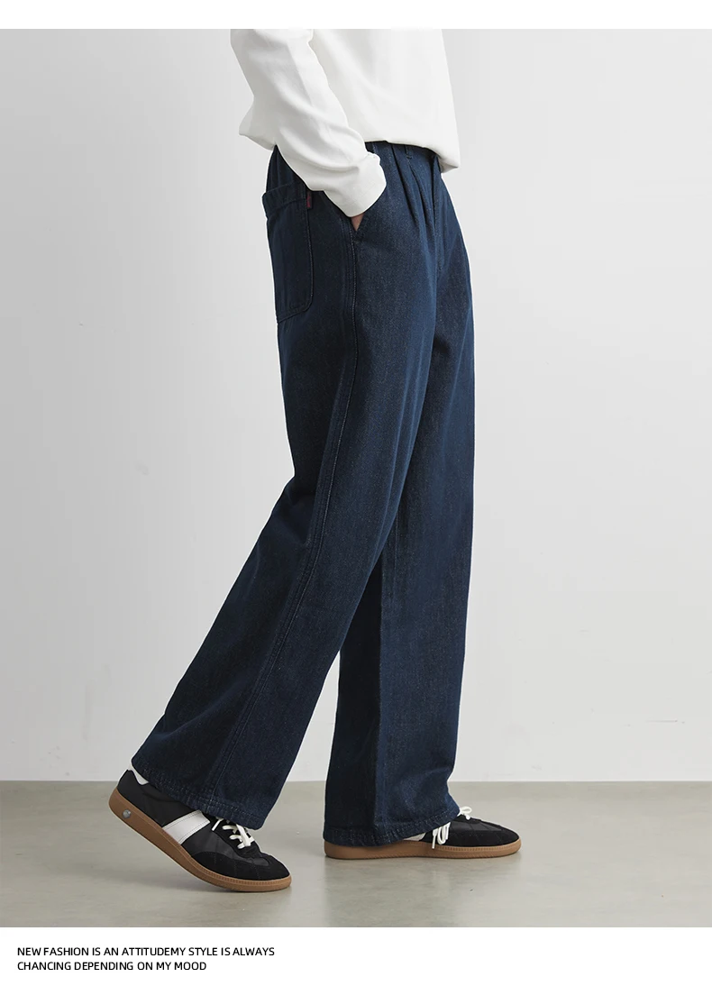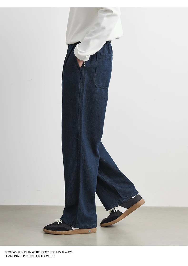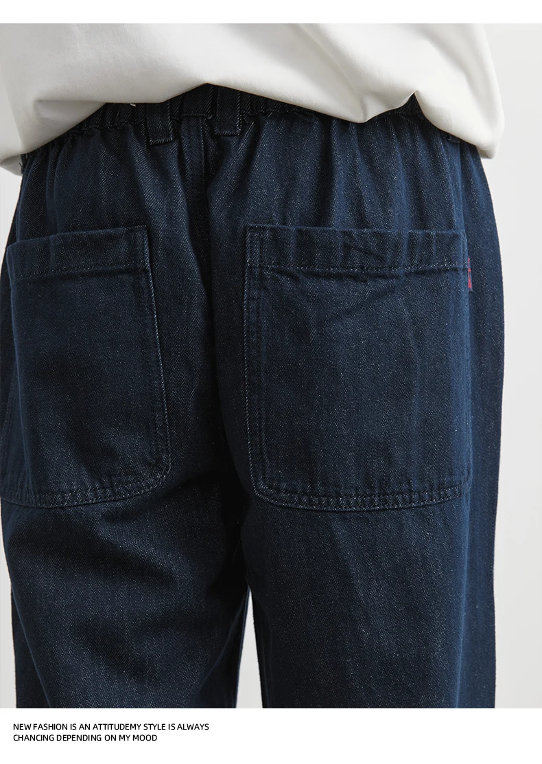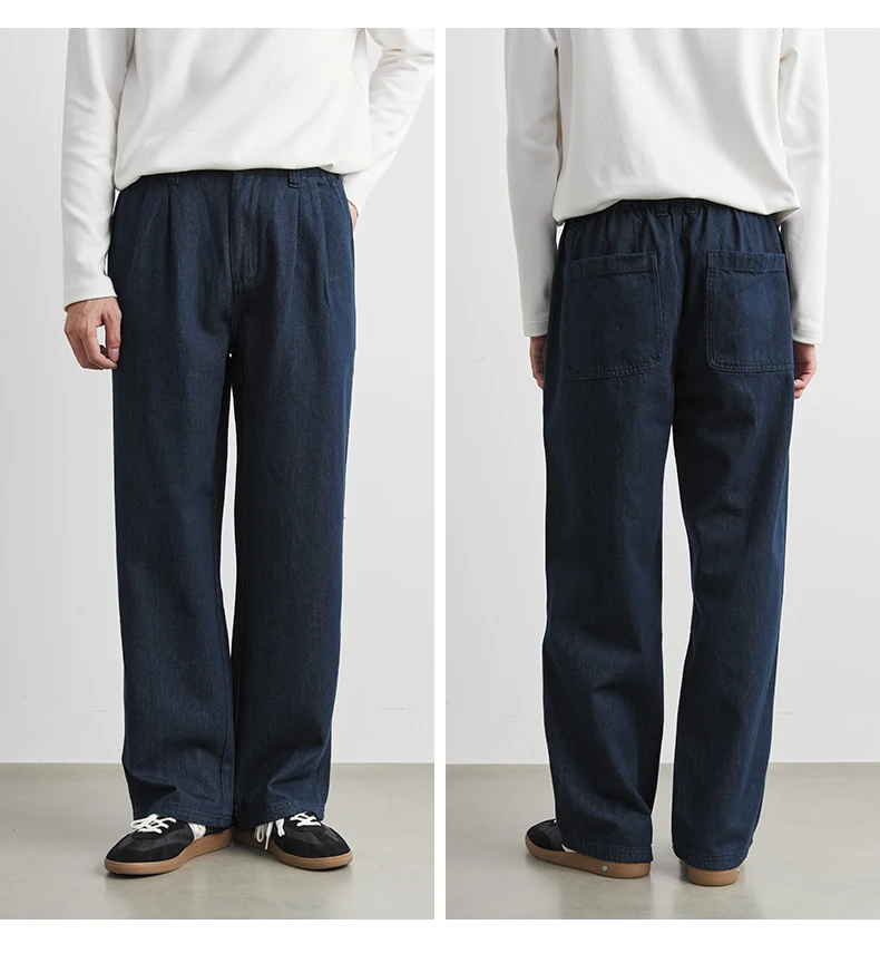 Men’s 100% Cotton Casual Loose-Fit Dark Blue Trousers Jeans