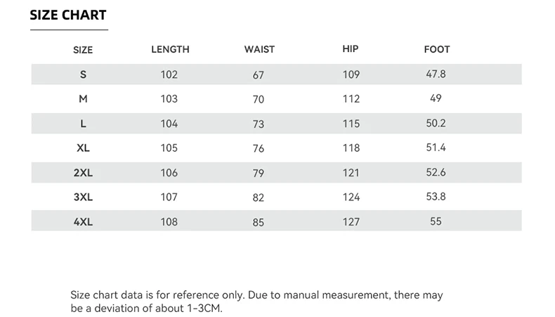 3XL: Waist 38-40 in, Length 45 in