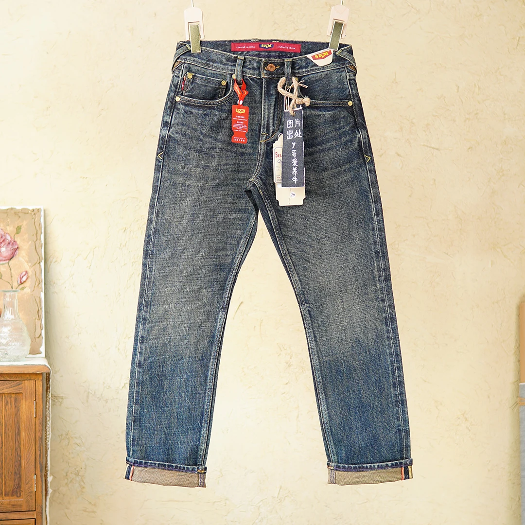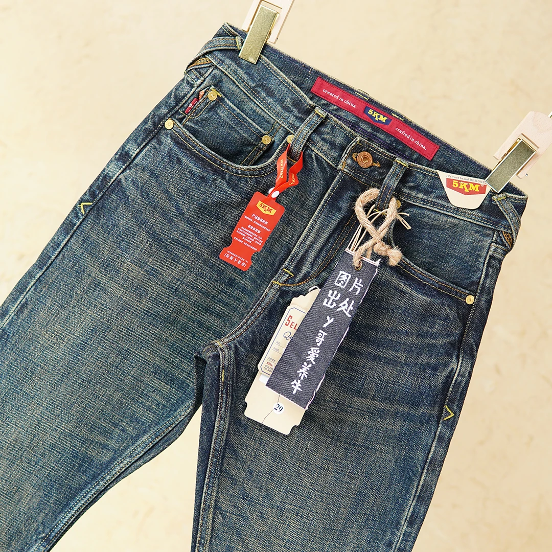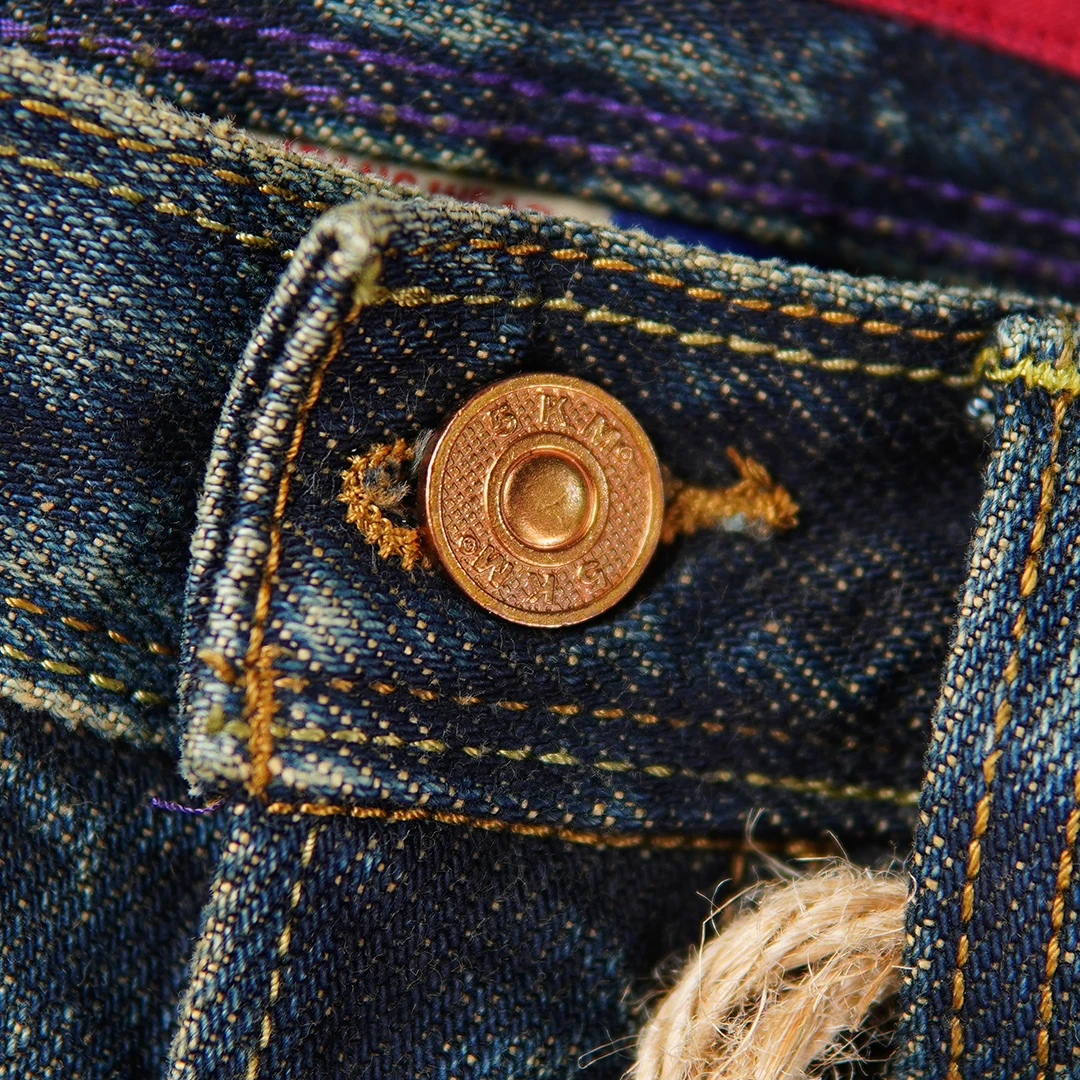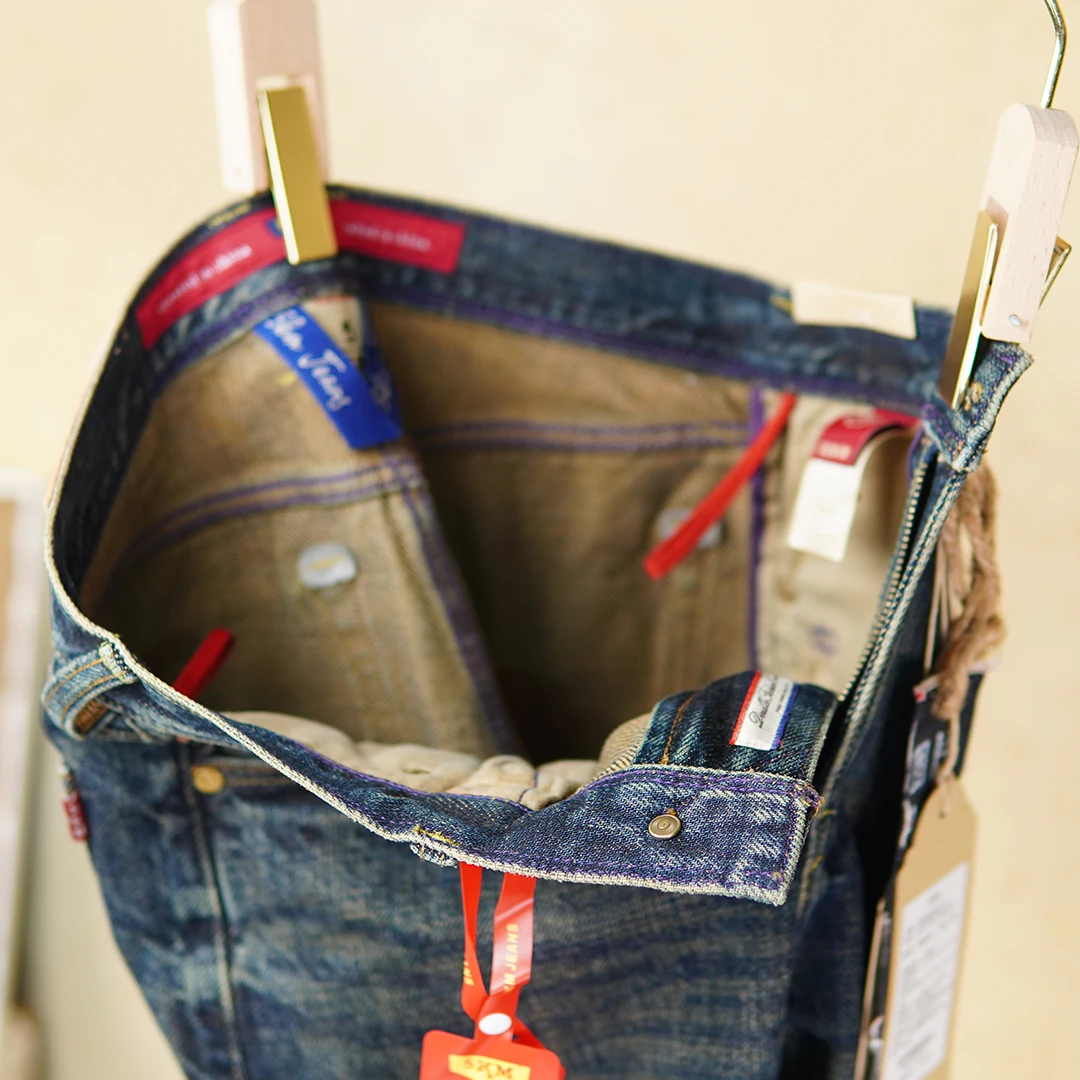 Crafted from 100% natural cotton selvedge denim, these jeans ensure breathability while maintaining a strong, structured fit. The non-stretch material preserves their original shape, giving you a clean, classic silhouette. The medium wash adds a subtle vintage look, while the scratched detailing provides a worn-in, authentic edge.