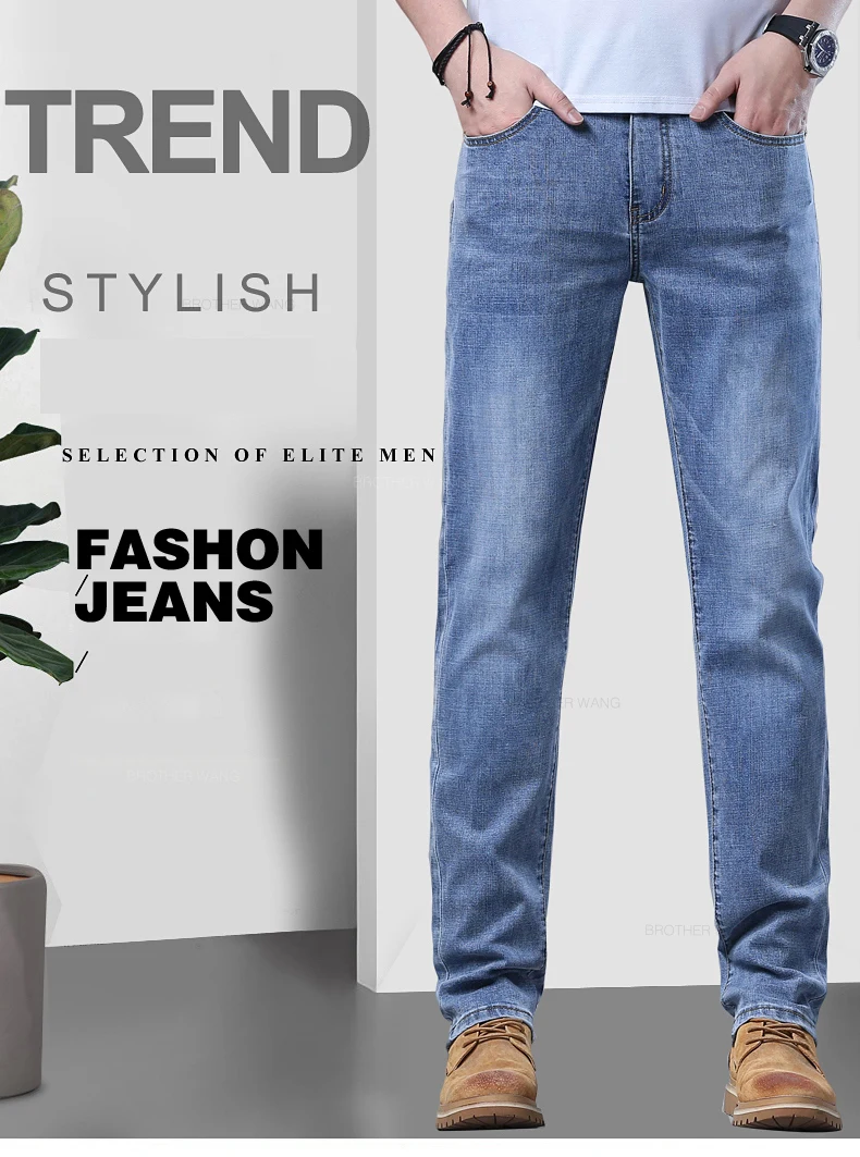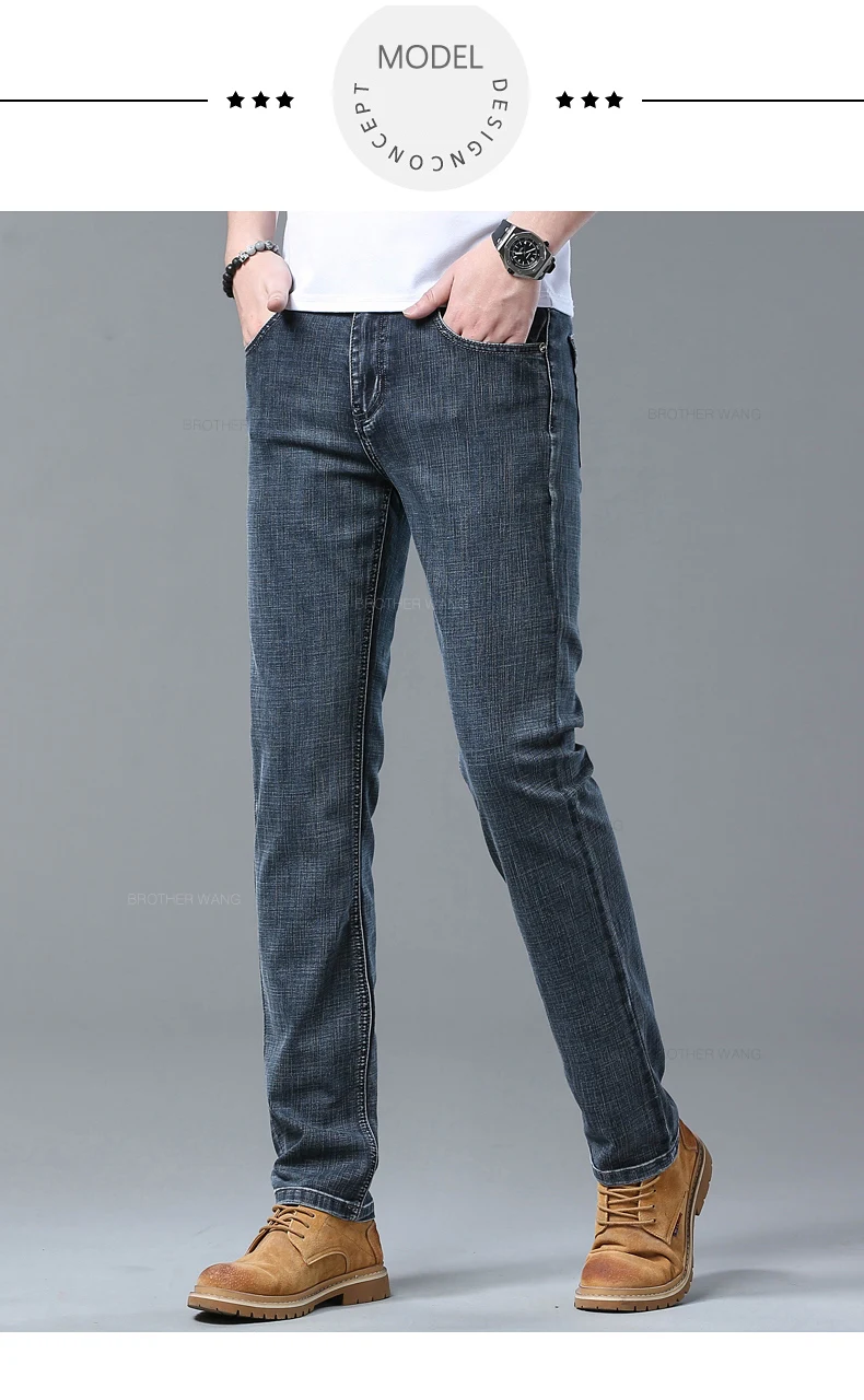 Upgrade your wardrobe this season with the Spring Men’s Lightweight Straight Jeans from Brother Wang. These stylish jeans are designed for men who value both comfort and elegance. Crafted with care, they are perfect for wearing during spring and autumn, whether you are going to work, meeting friends, or simply enjoying a casual day out.