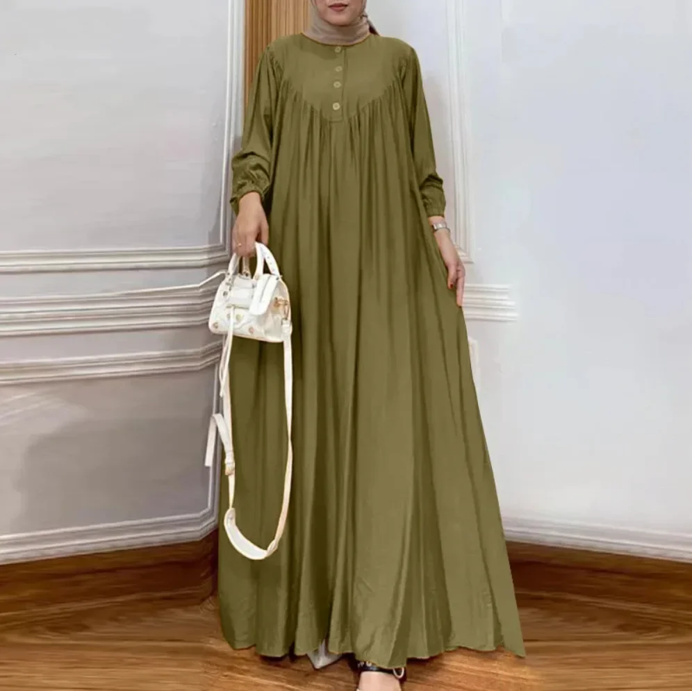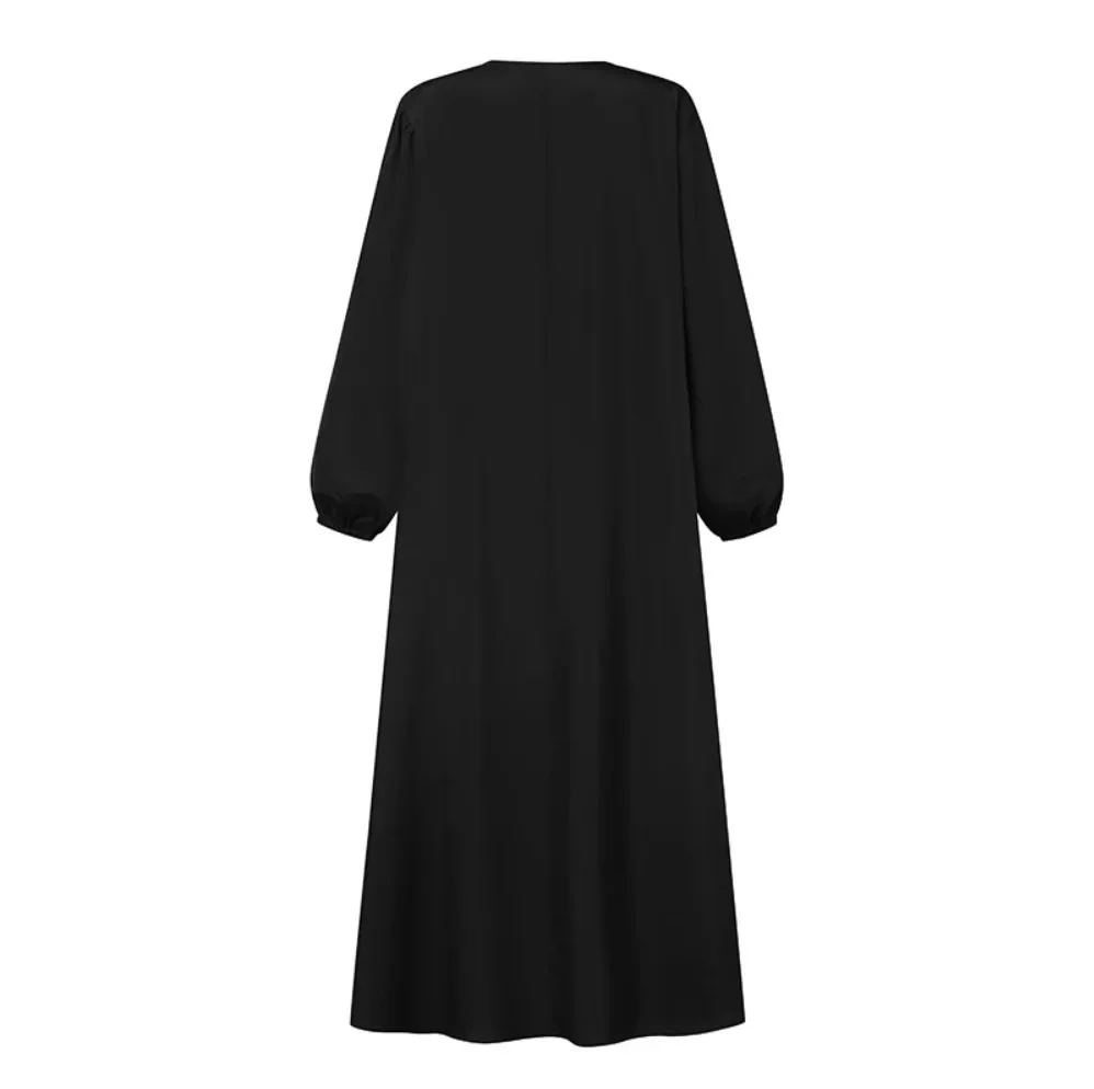 Unlike many dresses that cater only to limited sizes, this gown is available in plus sizes to embrace every body type. The loose fit silhouette provides freedom of movement while maintaining a graceful drape. This inclusivity makes it a wardrobe essential for women seeking modest yet stylish fashion.