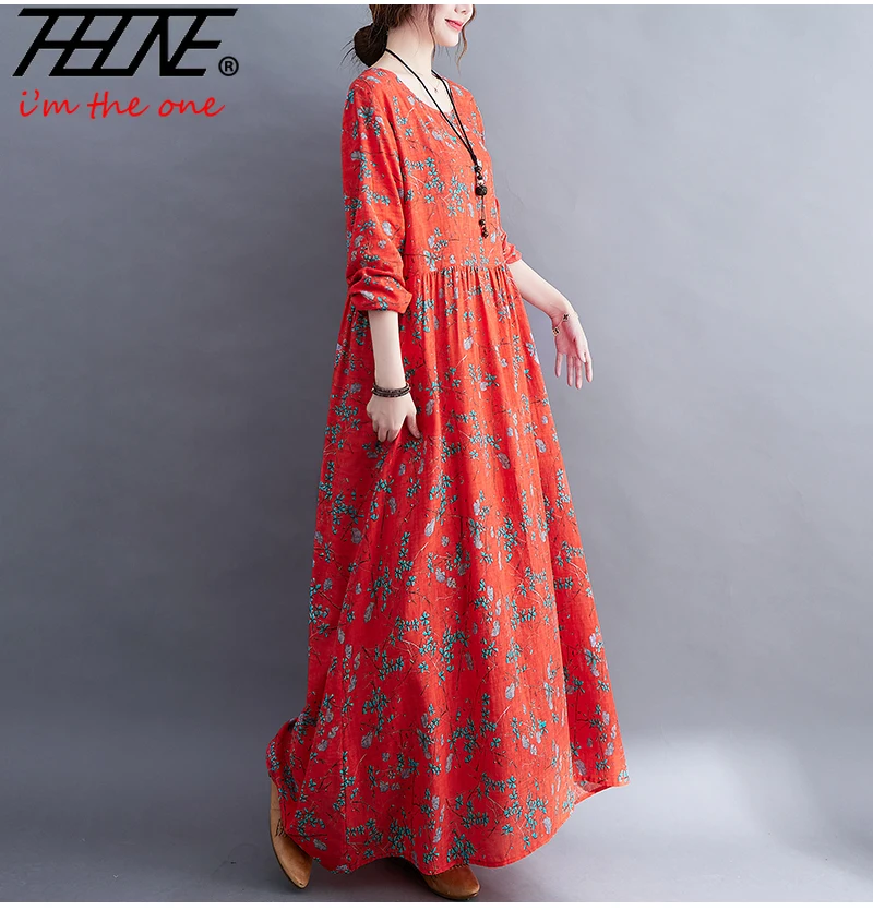 Elevate your everyday style with the THHONE Cotton Linen Floral Maxi Dress, designed for women who appreciate comfort and elegance. This loose-fit dress combines the softness of cotton and linen with a flattering A-line silhouette. Moreover, the pullover design makes it effortless to wear, while the floral print adds timeless charm for autumn and winter seasons.