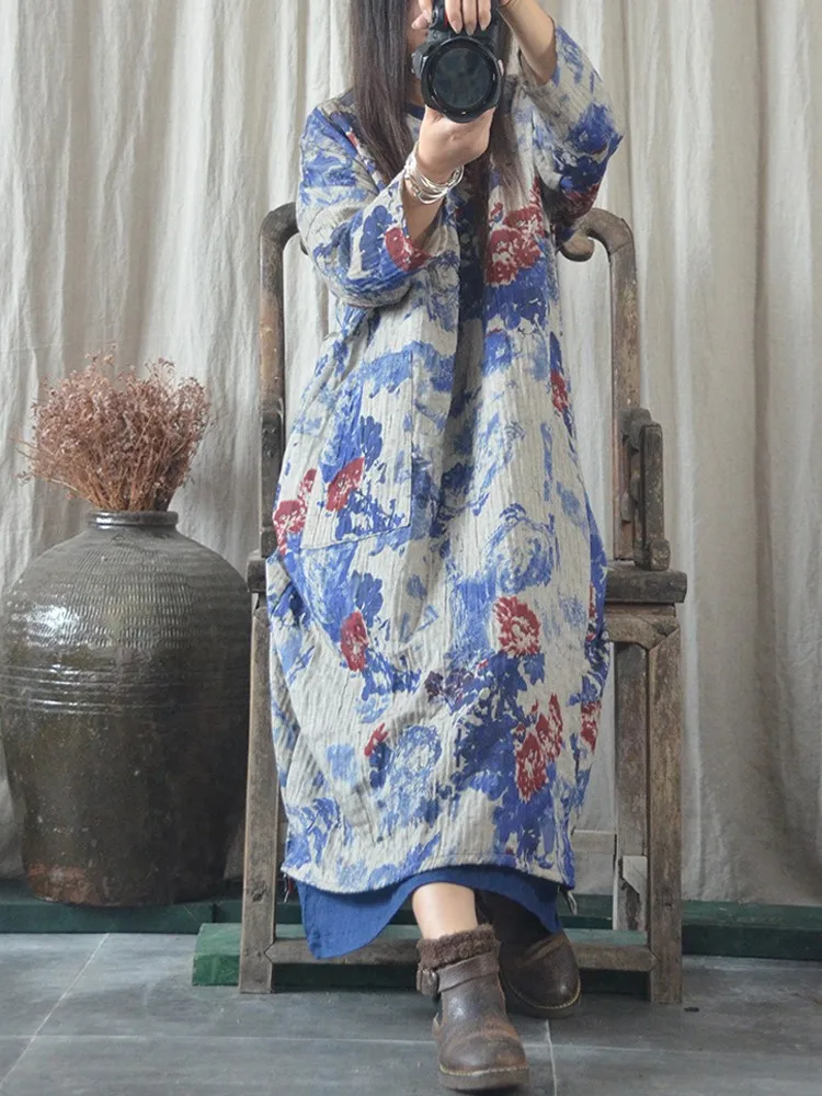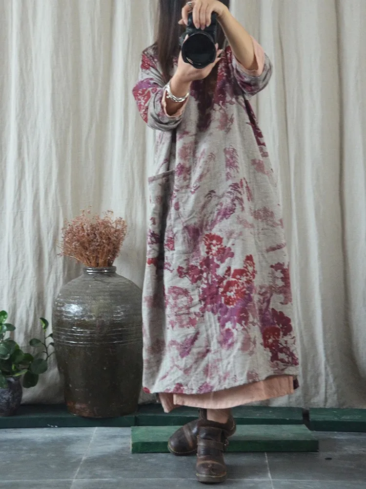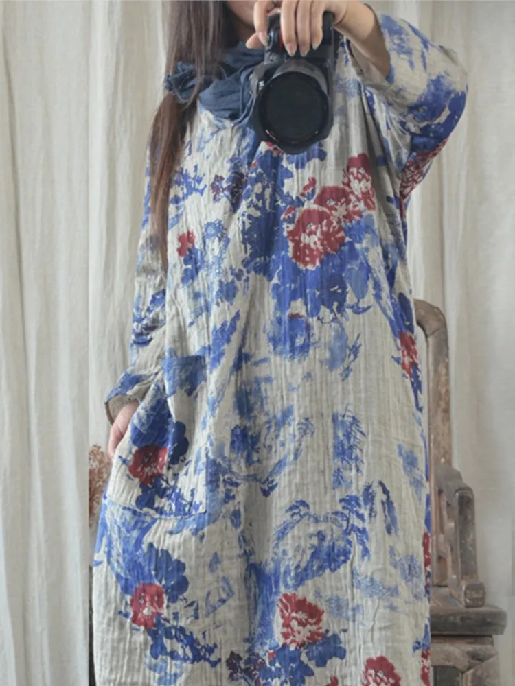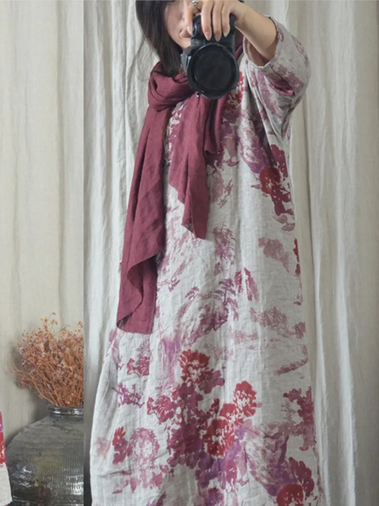 Women Autumn Loose Cotton Linen Chinese Style Dress