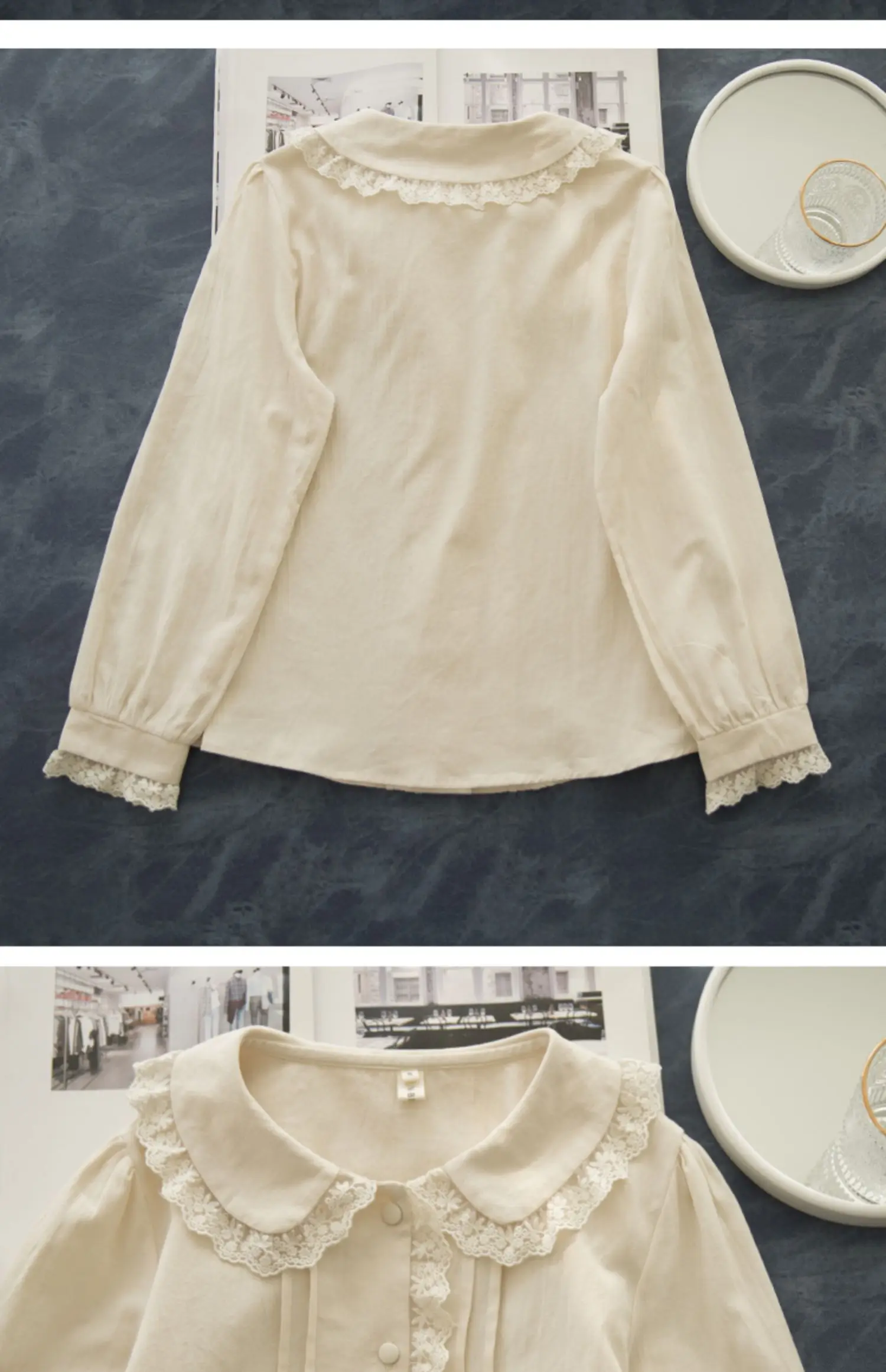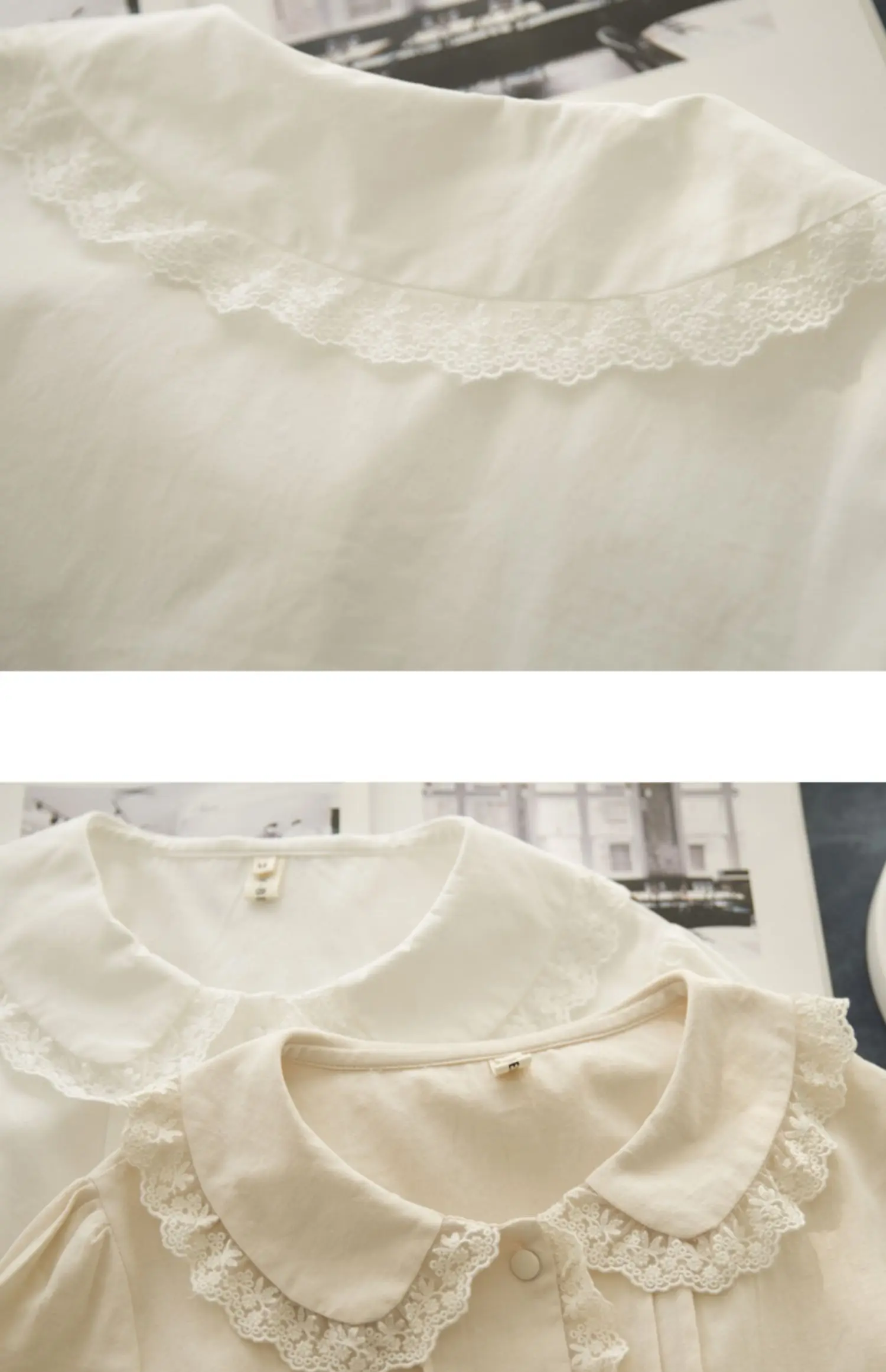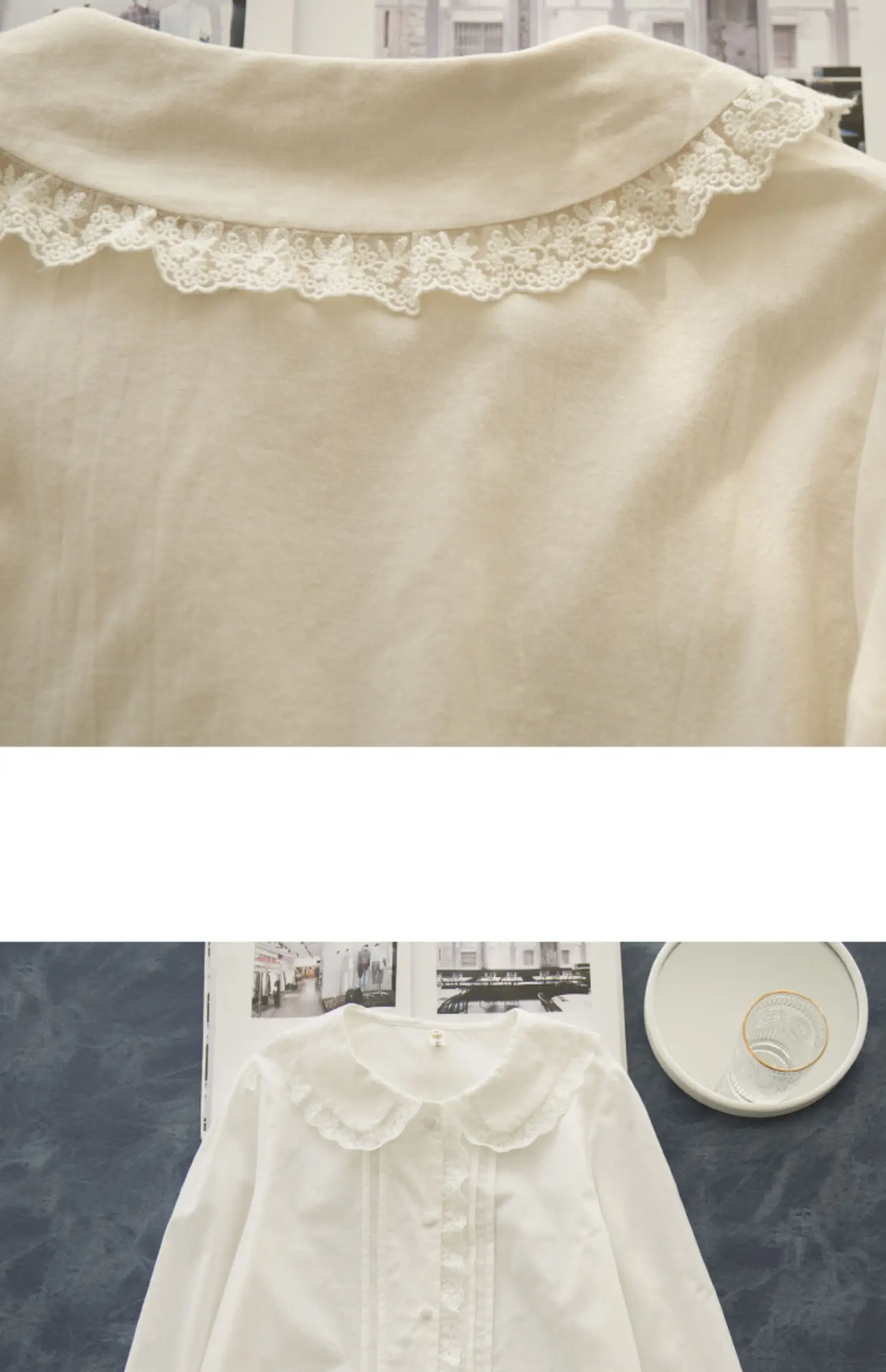 ✔ Peter Pan collar with chic lace details
