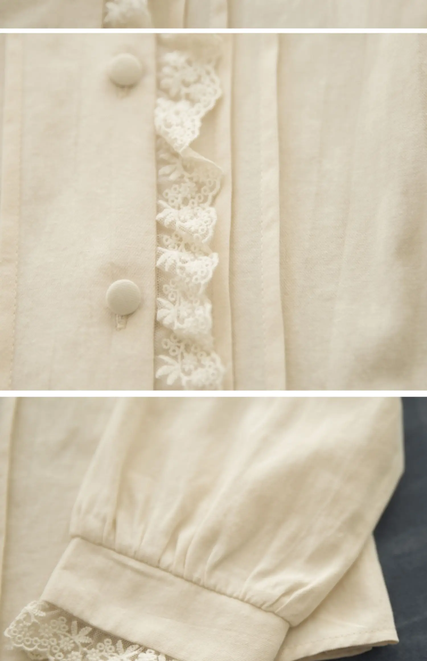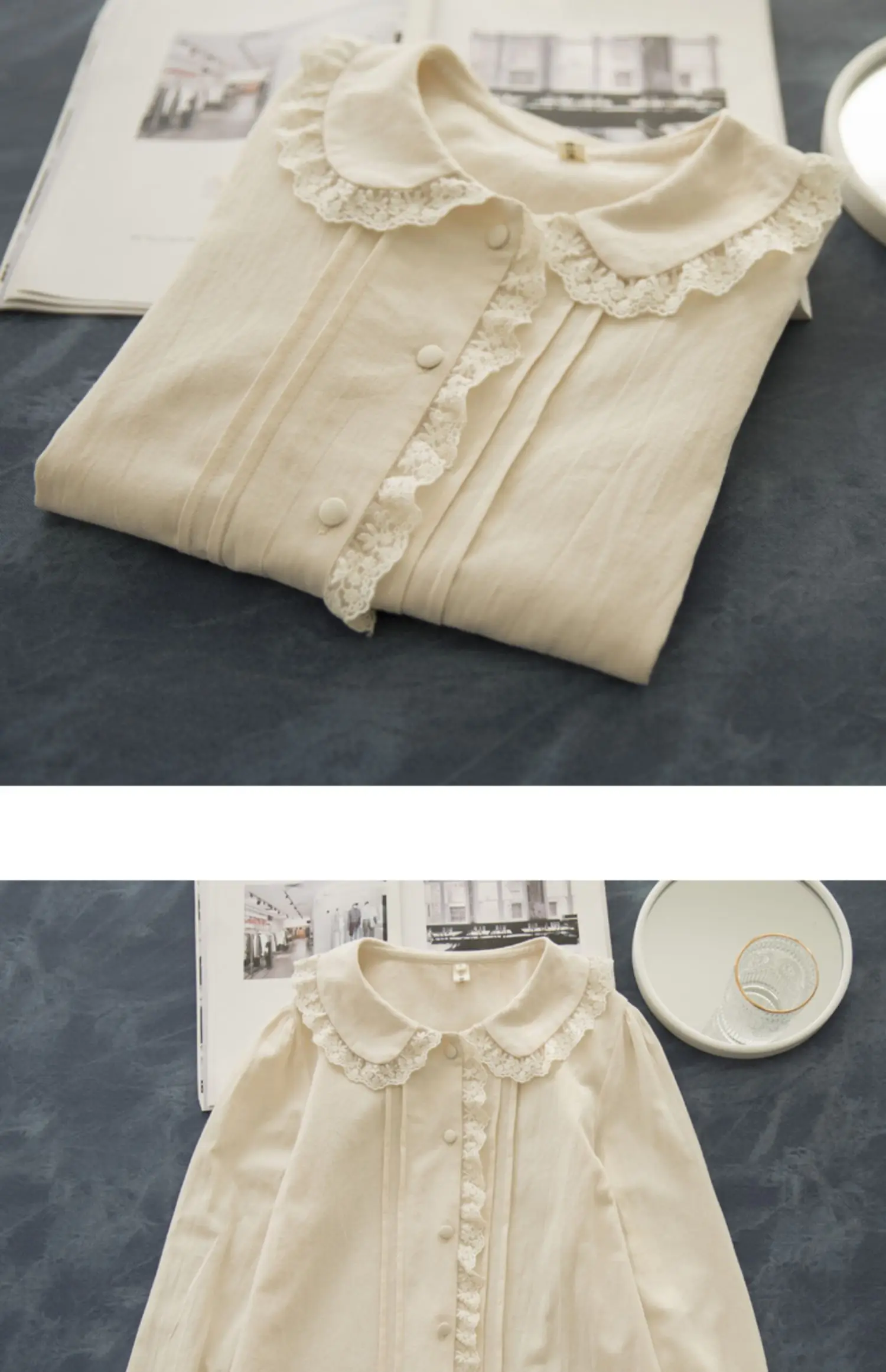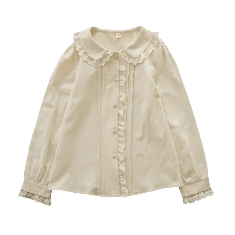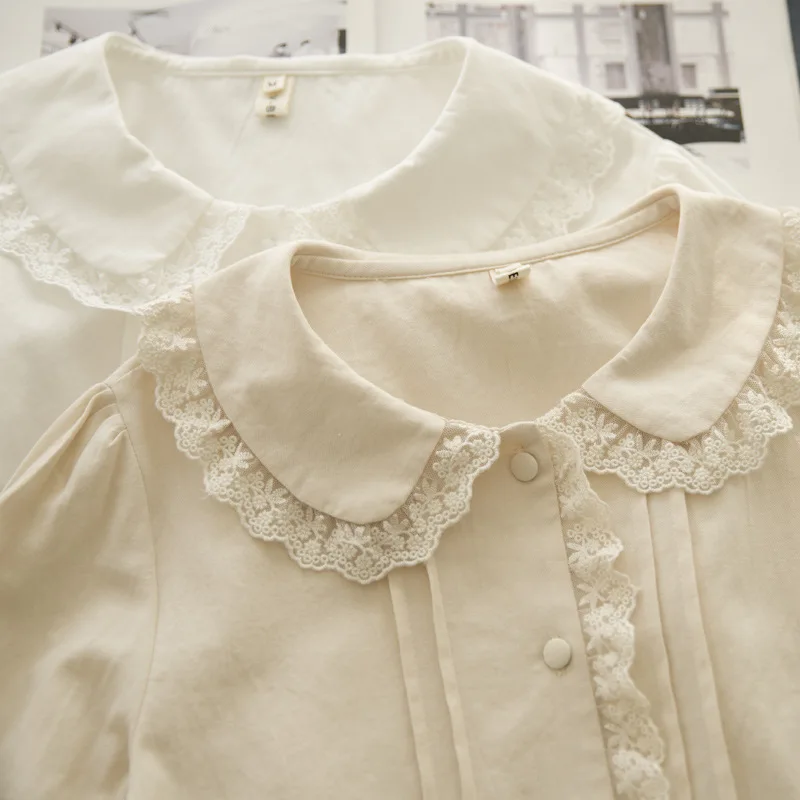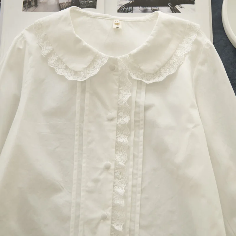 The Peter Pan collar adds a touch of vintage sweetness. Decorative lace and button closures enhance its feminine style. As a result, this blouse transitions effortlessly from office wear to casual outings.
