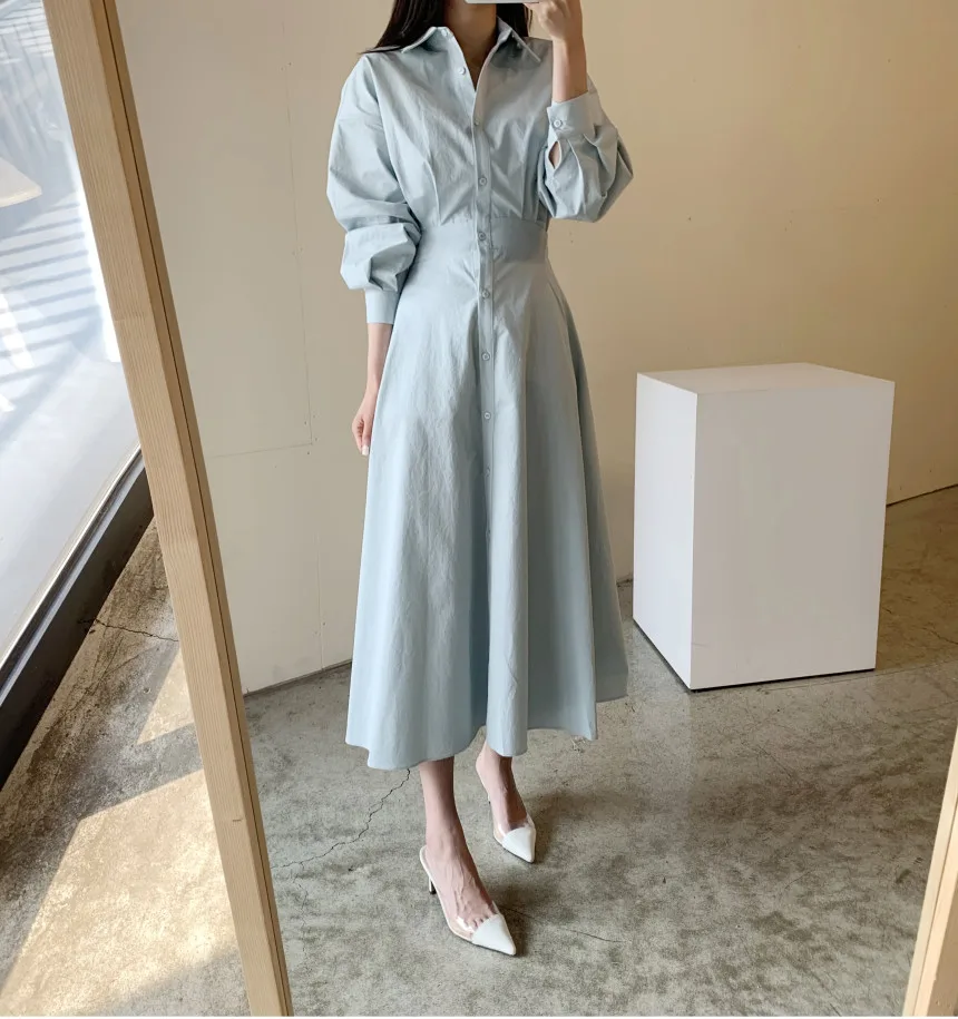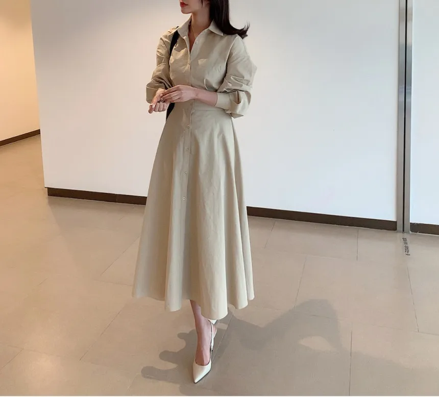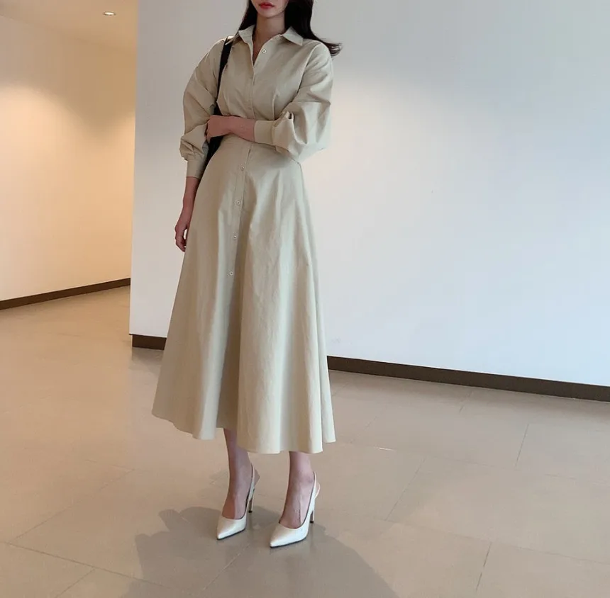The Yunting Autumn Shirt Dress is a versatile piece designed for women who value both style and comfort. Crafted with a premium chiffon fabric and cotton blend, it offers a lightweight yet structured feel that is perfect for the transitional seasons. In addition, its elegant mid-calf length and turn-down collar make it suitable for office wear, casual outings, or even evening events.