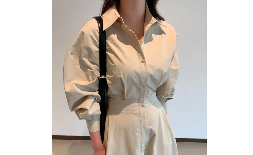 • Yunting Autumn Chiffon A-Line Shirt Dress for Women