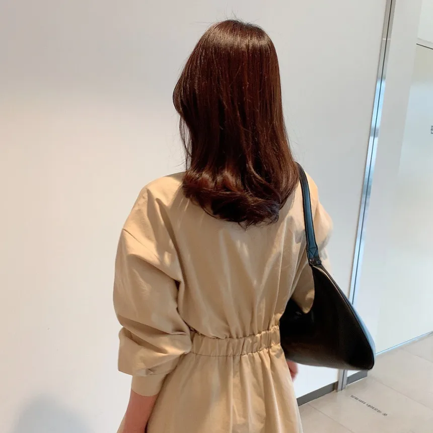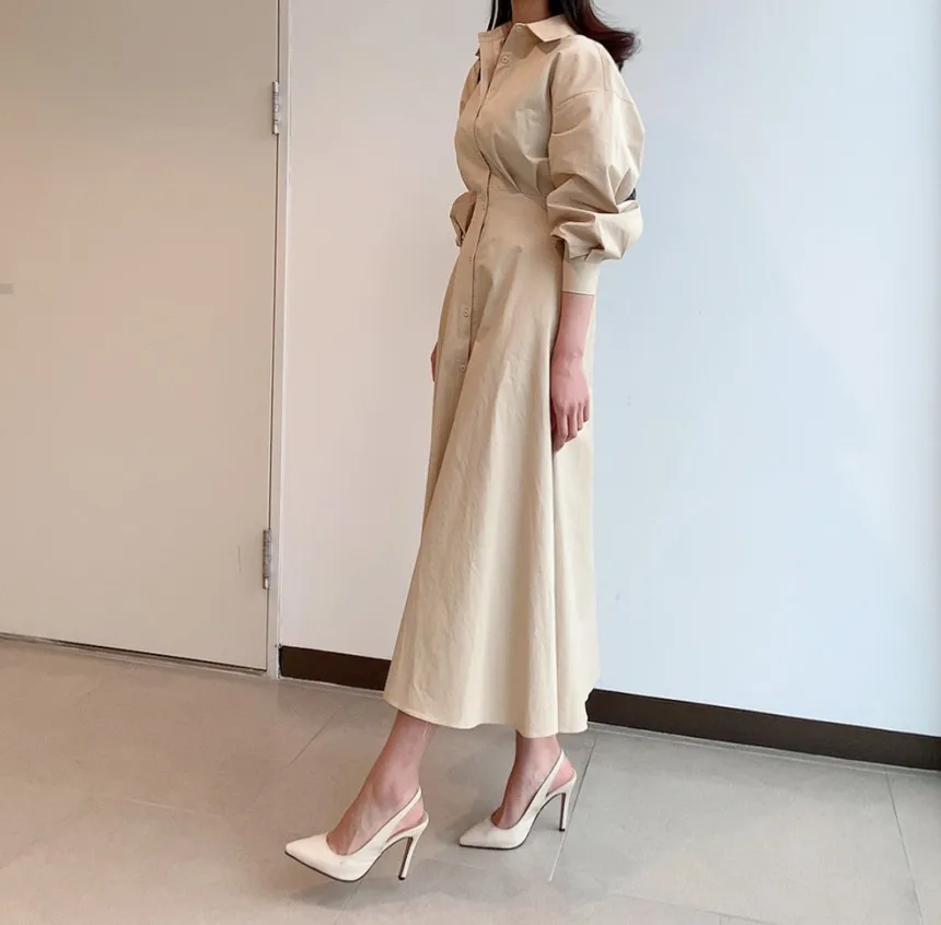 Pair this dress with boots and a trench coat for a professional office look, or with heels and accessories for an elegant evening style. For example, adding a belt can further highlight the empire waist, creating a more defined silhouette.