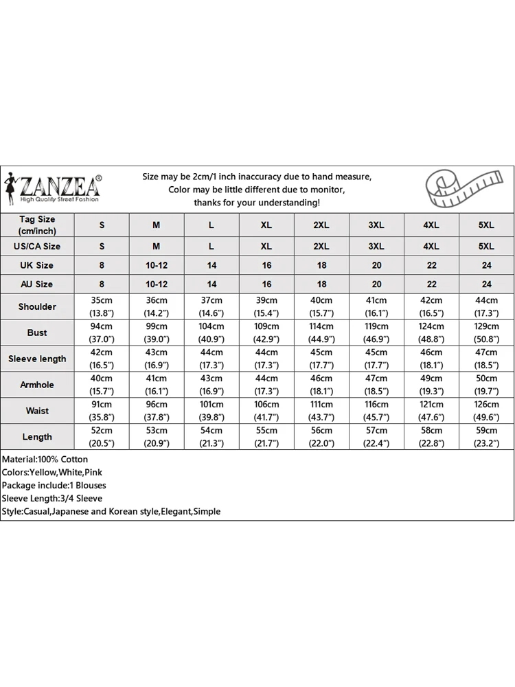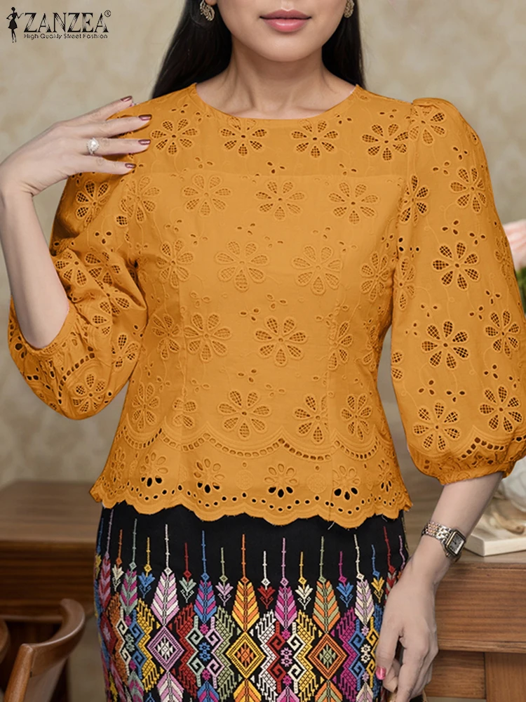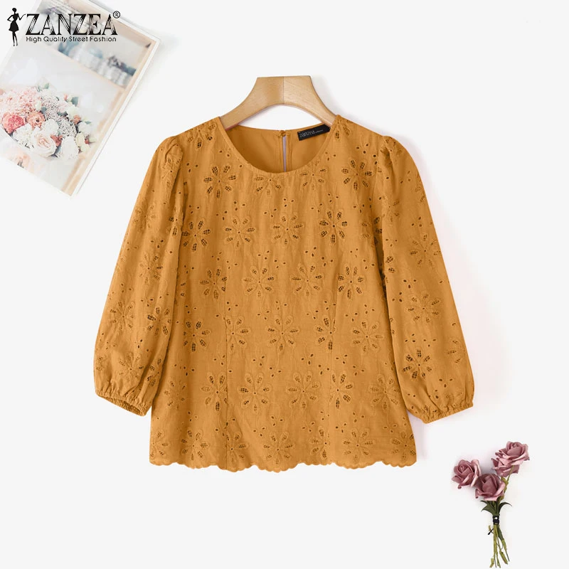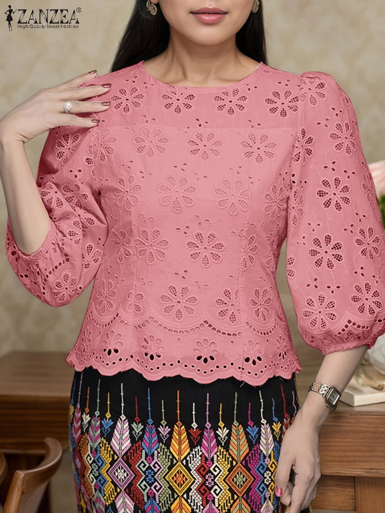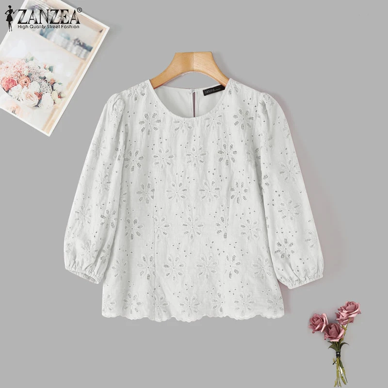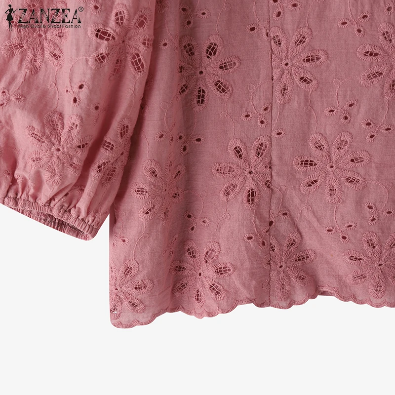 ZANZEA Cotton Lace Tunic – Oversized Casual Women Blouse