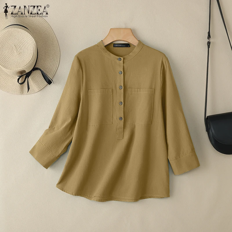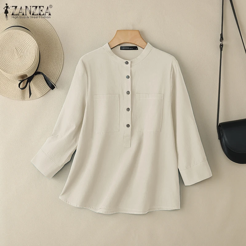 ZANZEA Women 3/4 Sleeve Cotton Blouse – Casual & Office Wear