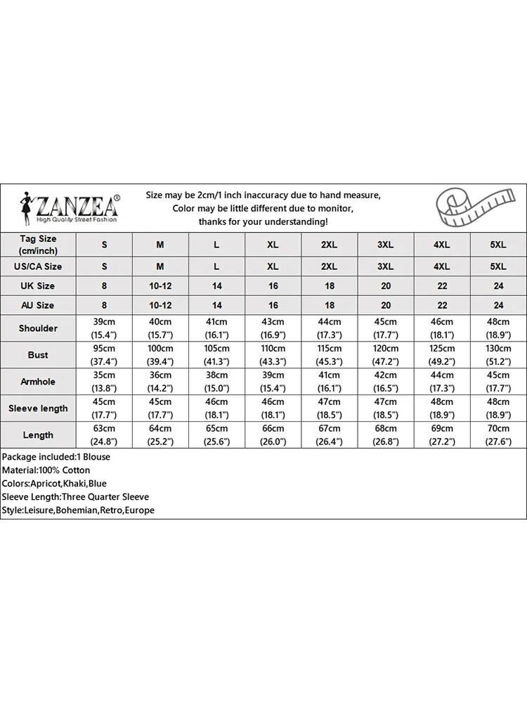 Elevate your wardrobe with the ZANZEA 3/4 Sleeve Cotton Blouse, a versatile piece designed for women who want comfort and style. Made from 100% breathable cotton, this blouse is perfect for spring, summer, autumn, and winter. Its lightweight broadcloth fabric keeps you cool while providing a soft, comfortable feel.