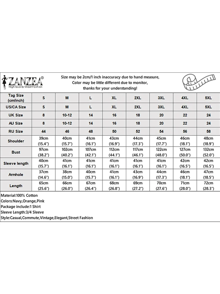 27 reviews for ZANZEA Women’s 3/4 Sleeve Cotton Shirt – Summer Casual