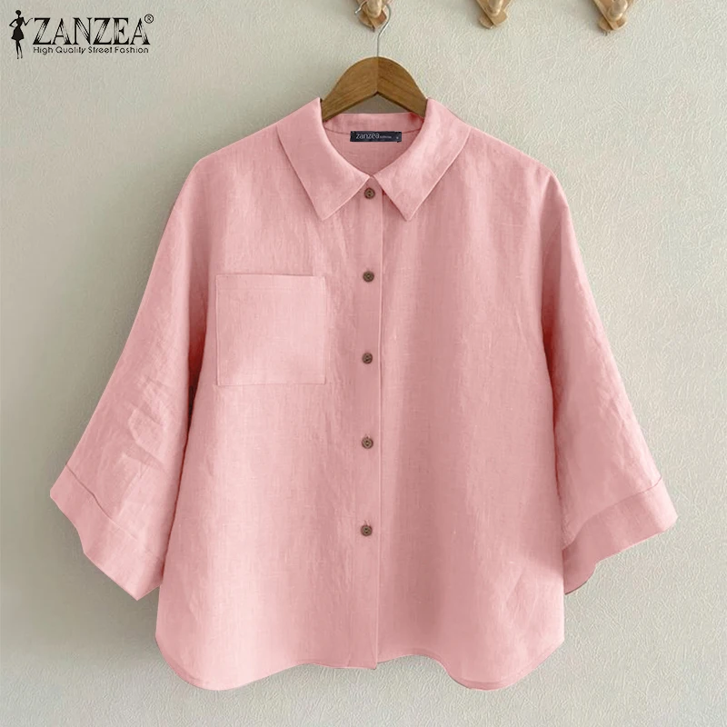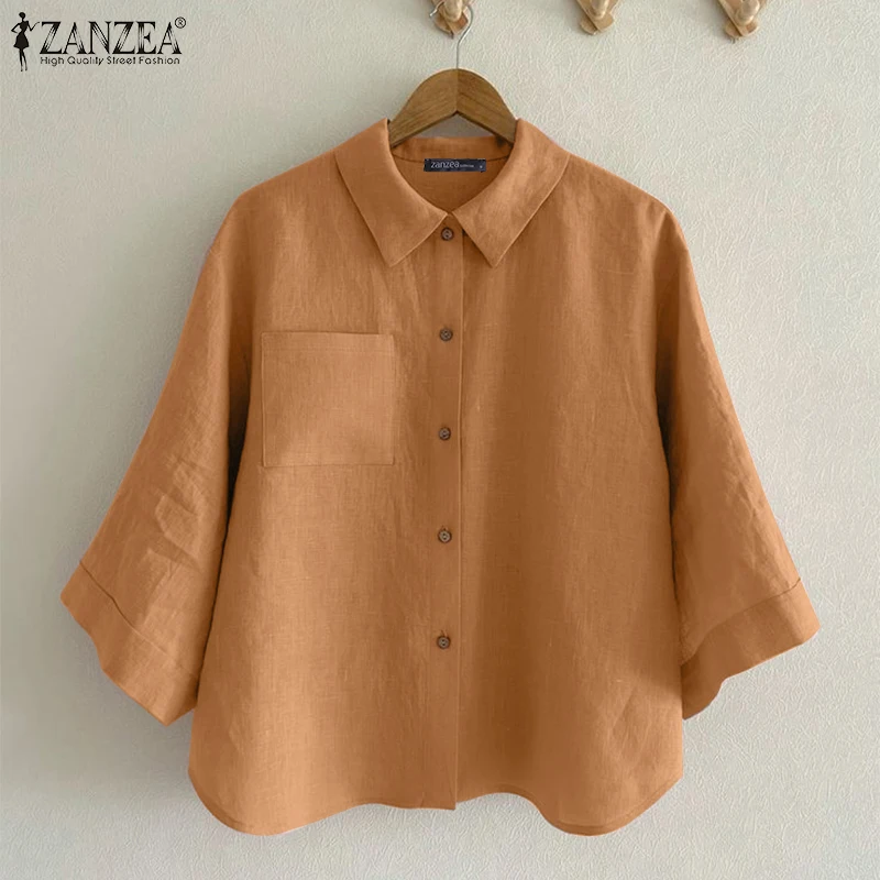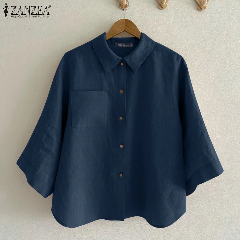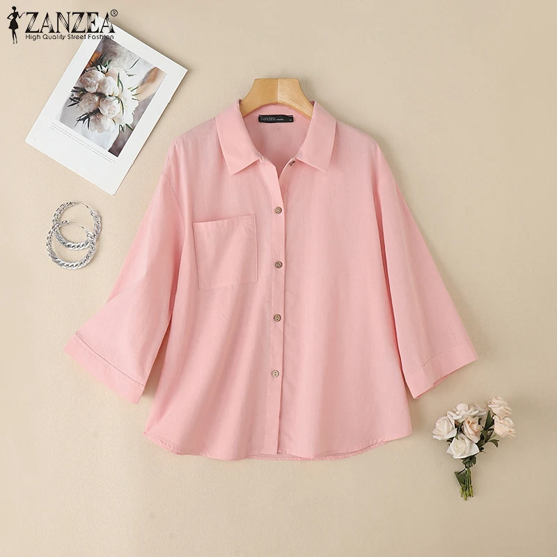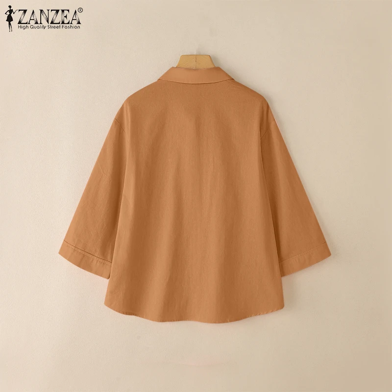 ZANZEA Women’s 3/4 Sleeve Cotton Shirt – Summer Casual