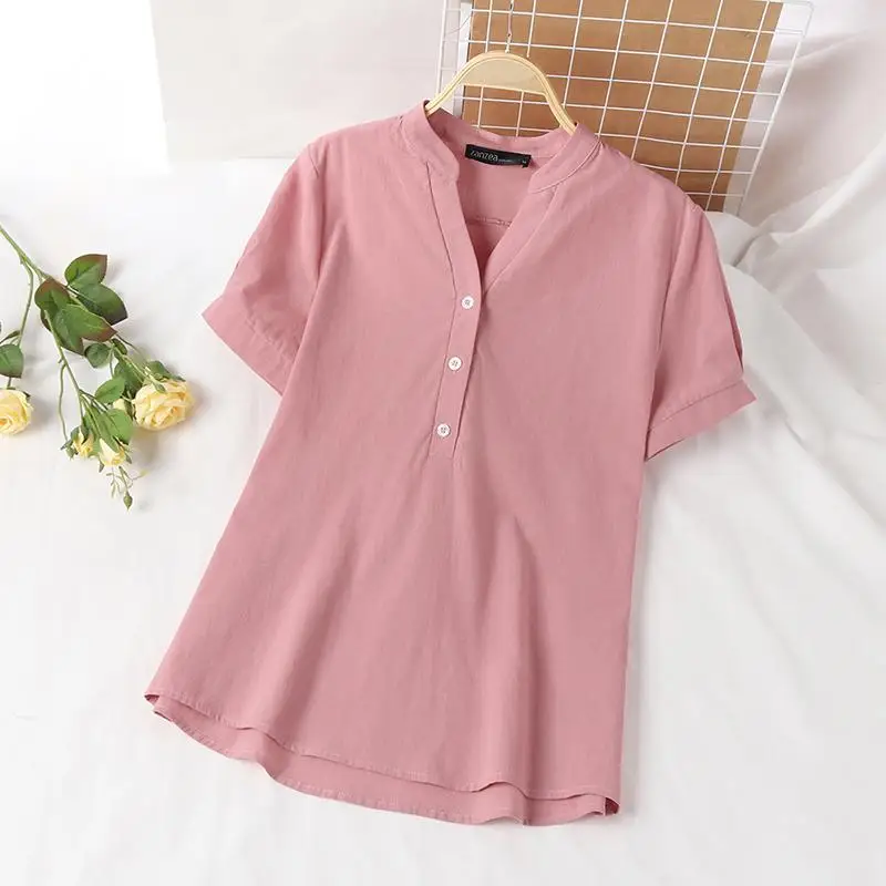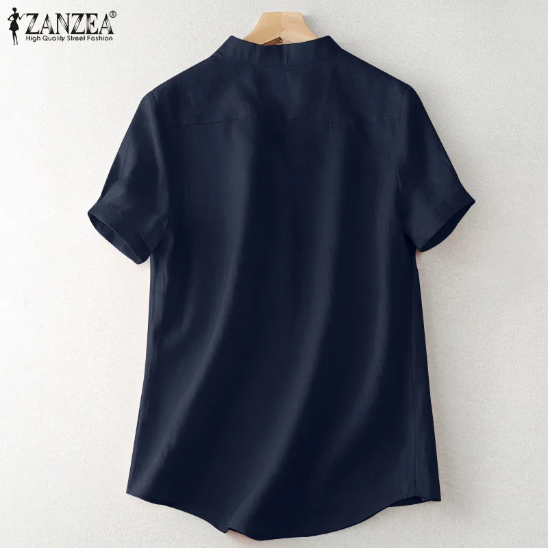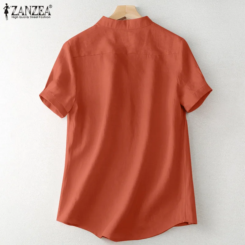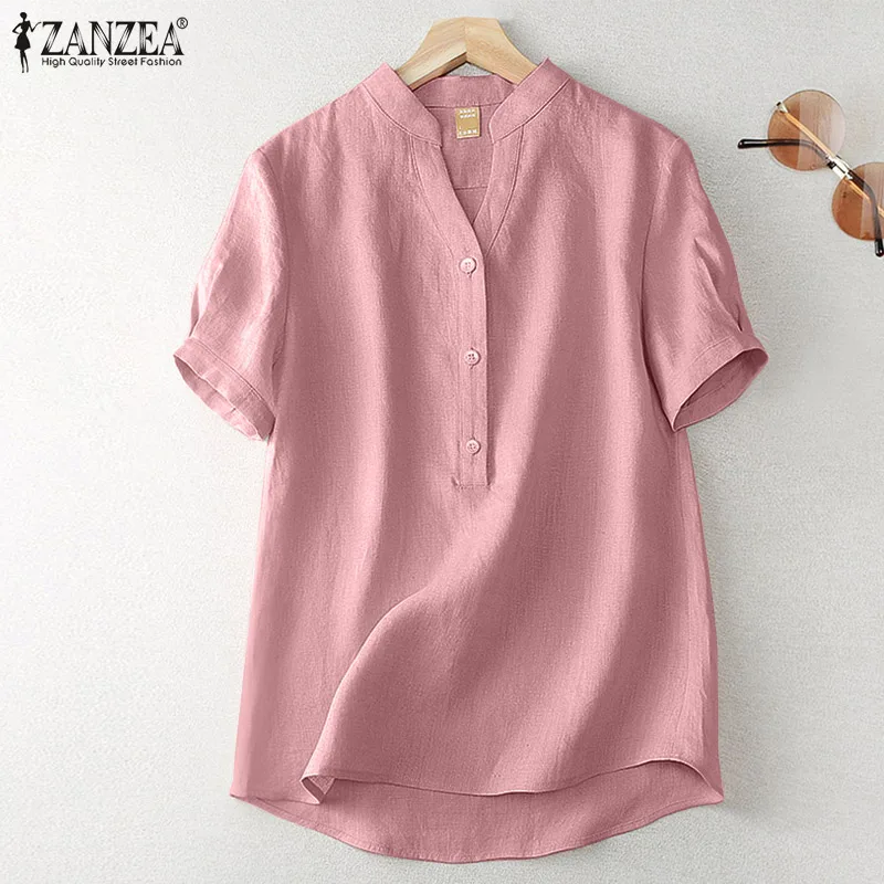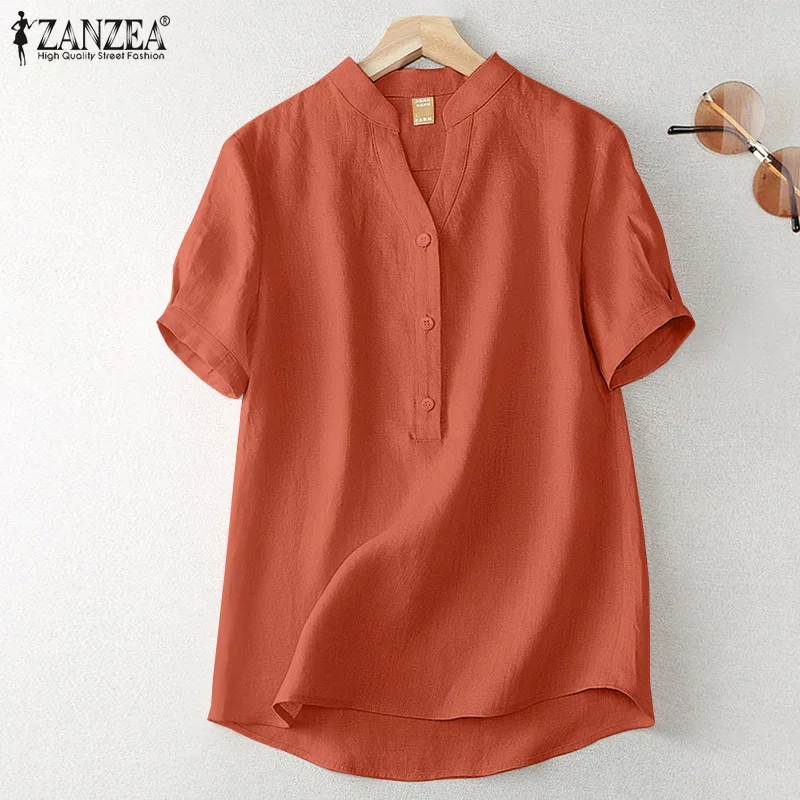 ZANZEA Women’s Summer Elegant Cotton Short Sleeve Blouse